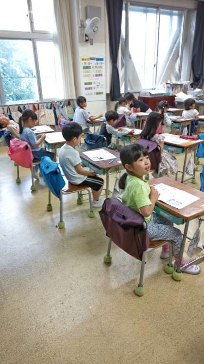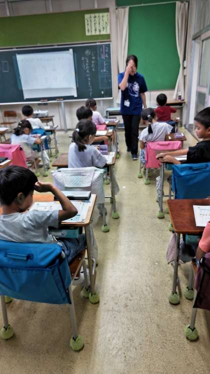 金曜日の5時間目、一週間の最後の授業ですね。1年生、今週もがんばりました。最後は書写の時間です。
