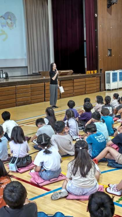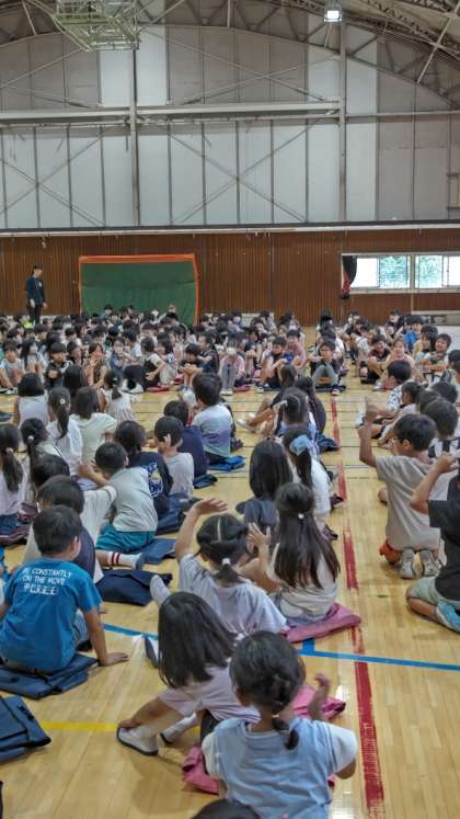 先生からは7月の生活目標「きれいにかたづけよう」のお話。そして明日から清水に出かける5年生にみんなで「いってらっしゃーい!」をしました。