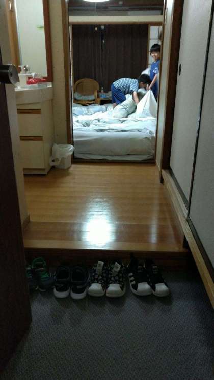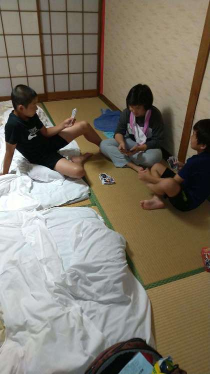 早く準備ができて遊べている部屋、靴がきれいに揃えられている部屋もあれば、いつまでも布団が敷けずにドタバタしている部屋…消灯時間が過ぎて先生に注意されて…(^_^;)
