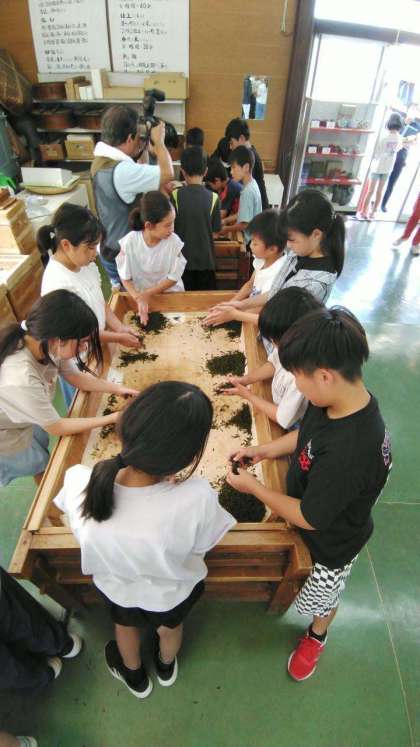 茶もみは両手をすり合わせて、茶葉がくるくる丸まるようにしていきます。もめばもむほどにお茶のいい香りが広がってきます。香りが美味しいです(^^♪