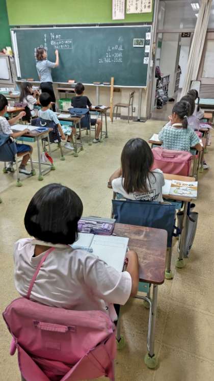 「かさ」の学習が続いています。「L」や「dL」の単位を学んだあとで、先生からの問いかけです。「もっと小さいもののかさはどうしましょうか」