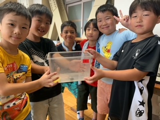 子ども達、最後まで責任を持って飼育してくださいね。観察し終えたら、元いた場所に戻してあげてくださいね。(虫かごは、理科室に戻してくださいね。)