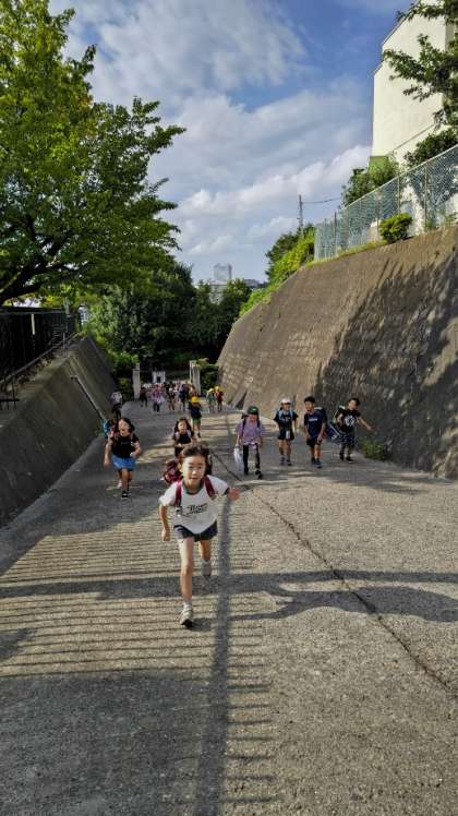 (「校長先生、今日中休み外で遊べるかなあ?」「今日はきっと大丈夫だよ」)
