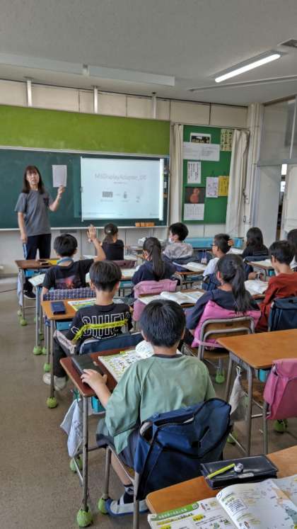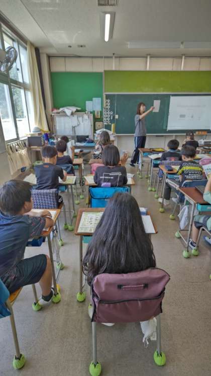 授業の始めは、都道府県クイズからです。各都道府県の形を描いたカードを示しながら、先生が少しずつヒントを言います。