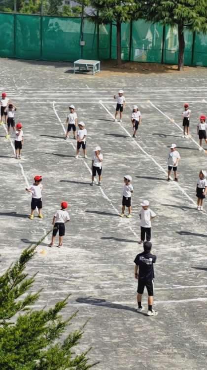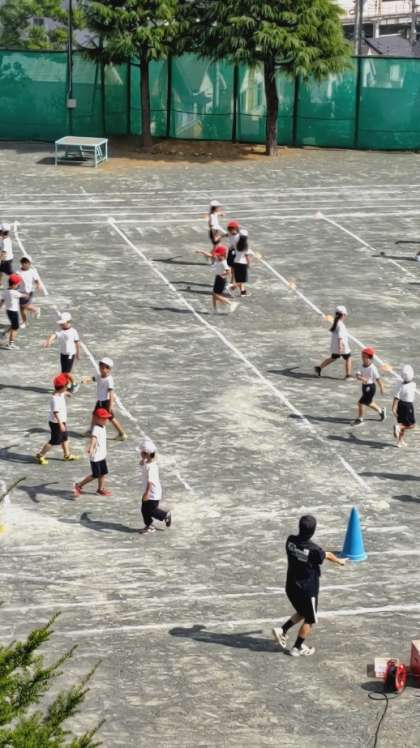 (朝一番、1校時から2年生が校庭でダンスの練習です)