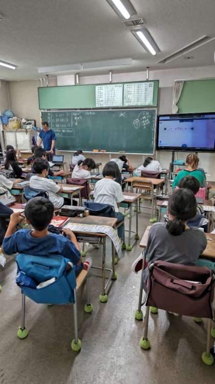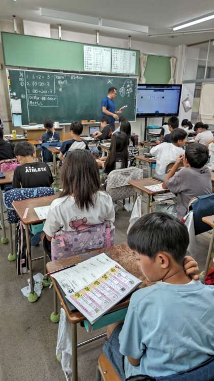新出漢字の学習をしています。「挙」と「覚」ですね。上の部分の点の打ち方に気をつけましょうと、先生からのアドバイスがありました。