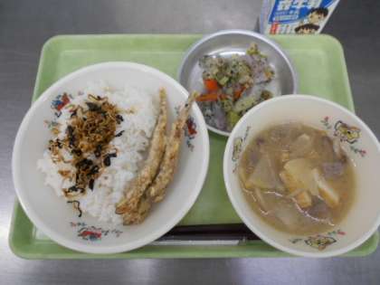 山形県内でも地域によって味付けは異なり、給食では庄内地域で食べられるみそ味で豚肉をつかった芋煮でした。