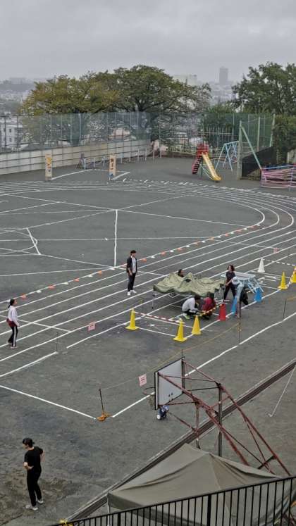 おはようございます。現在少し小雨の様子ですが、雨雲レーダーでは今後の降雨を確認するまでには至りません。運動会を実施する準備をしています。