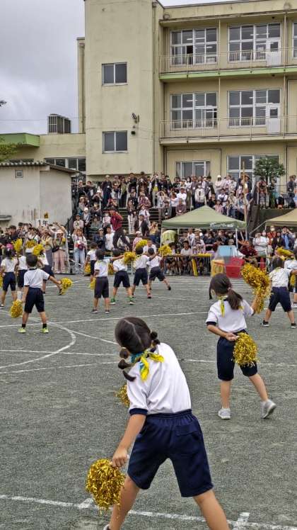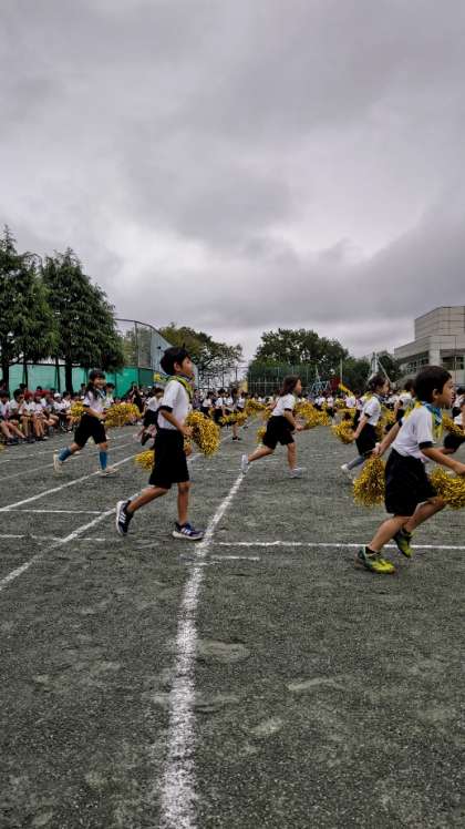 【1年生表現】「青と夏・ぼくらの八王子」です。小学校初めての運動会です。元気よく入場します。