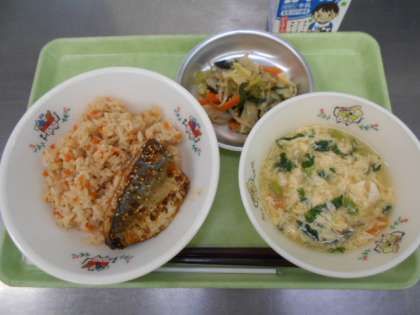 10月10日は「目の愛護デー」ということで、目の働きをたすけるビタミンAが豊富に含まれているにんじんをたっぷり使った給食でした。