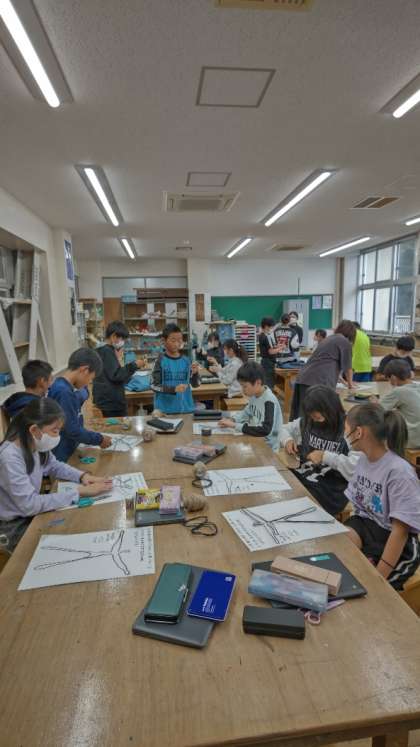 「12年後の自分」という作品づくりが始まりました。24歳の時、何をしているのかな。未来の自分を想像しながら立体で表現しましょう。