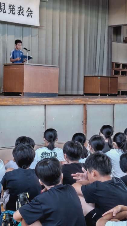 (小宮小と宇津木台小の6年生、そして石川中の2年生の全員が集合し、各校代表が意見を発表しました)