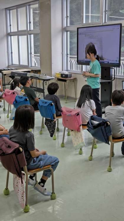(トランペットとはどんな楽器か、どうやって音を出すのか、動画を見ながら学習します)