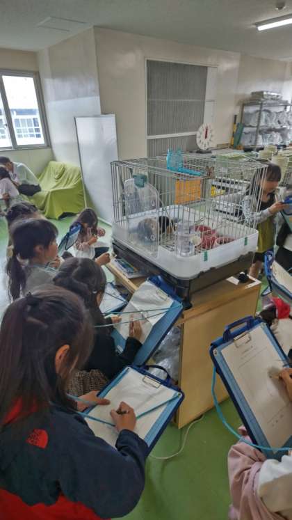中休みと昼休みは今、モルモットのチョコちゃんが大人気です。というのも、生き物委員会主催の「チョコのイラストコンテスト」が行われているからです。