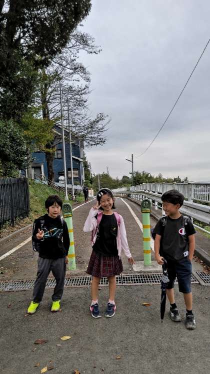 今朝は北門で朝のあいさつをします。すっかり秋も深まりました。正門と同様に木々の葉が落ち始めています。