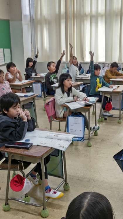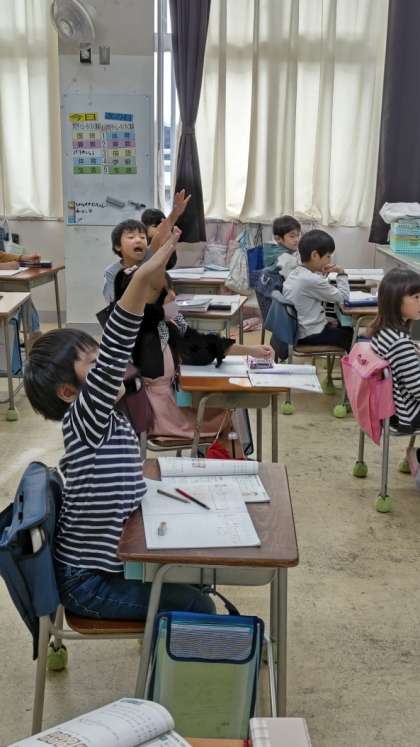 (黒板でやってくれるひと!「ハーイ!」「ハーイ!」)