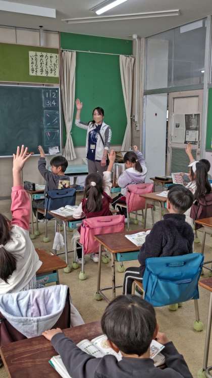 「大きいかず」の学習です。教科書のイラストでは、2人の子の机の上にたくさんの棒が散らばっています。
