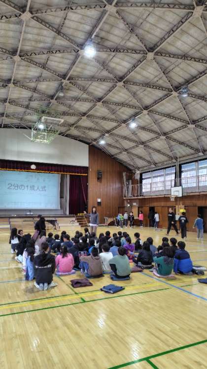 4年生が明日の「2分の1成人式」の練習を始めるところです。少しだけ様子を紹介いたします。