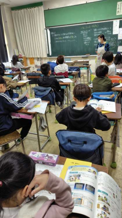 「けんこうによい かんきょう」の学習です。保健の先生が授業をしています。毎日を健康に過ごすためには・・・。