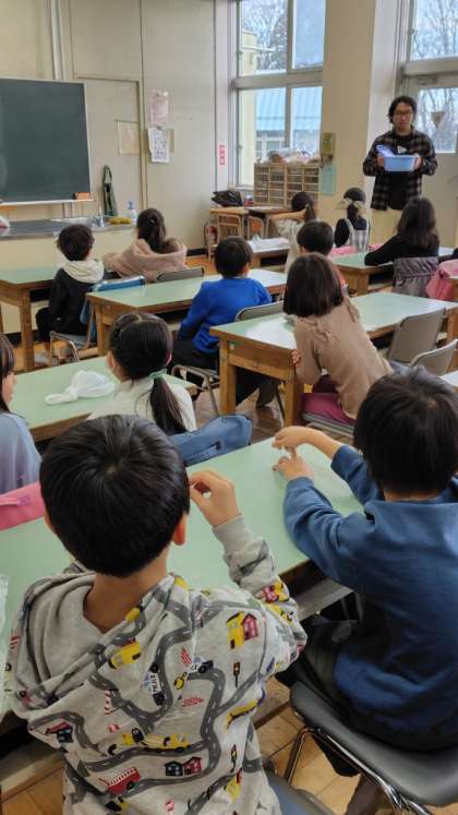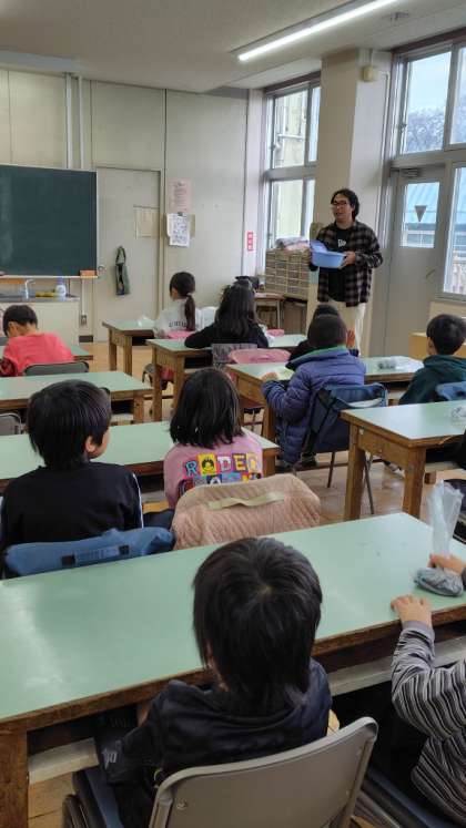3年生が家庭科室で授業をしています。3年生ですから、家庭科ではありませんよね。・・・実は社会科「むかしの道具」の学習でした。