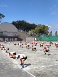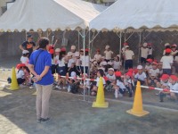 さて、今度は1年生です。はじめにダンスの位置を丁寧に確認しています。曲に合わせて...