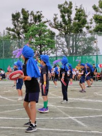 [4年生SUN FLAG] 種目も後半に入ります。鮮やかなオレンジのフラッグが校...