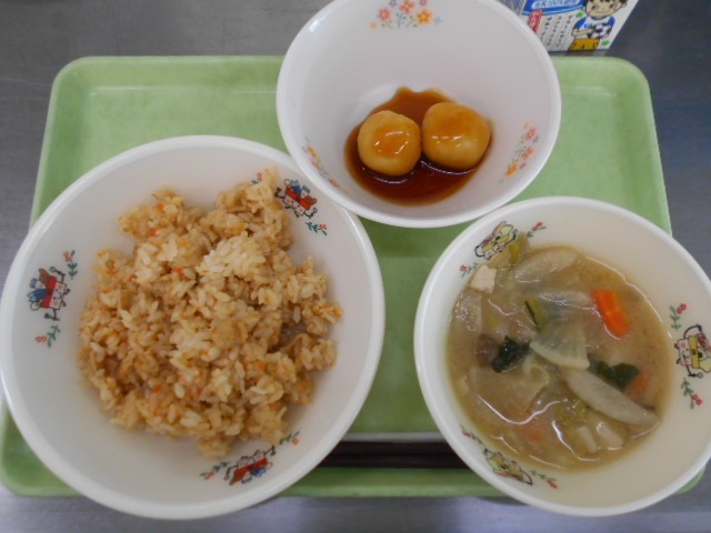 -献立-こぎつねごはん芋の子汁お月見だんご牛乳お月見は、秋の収穫に感謝するお祭り...