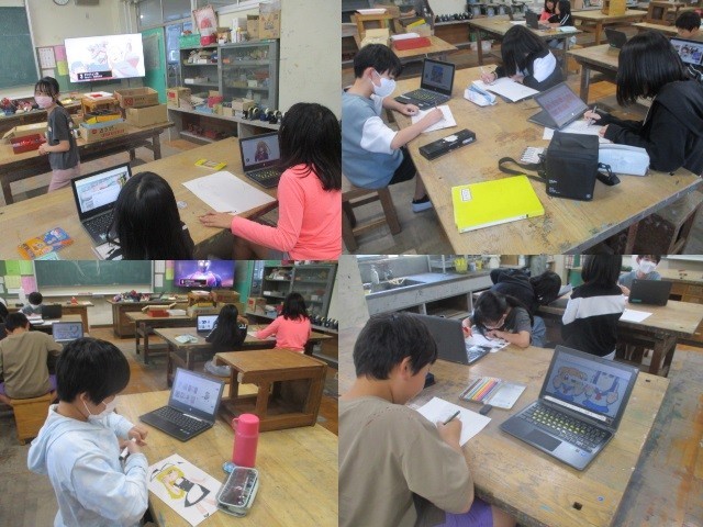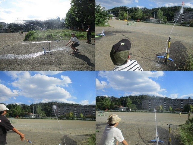 図工室では、イラストクラブが真剣に作品に取り組んでいました。校庭では、科学クラブが、ペットボトルロケットを秋空に空高く打ち上げていました。また、運動クラブは、良い天気の中、テーボールを楽しそうにやっていました。