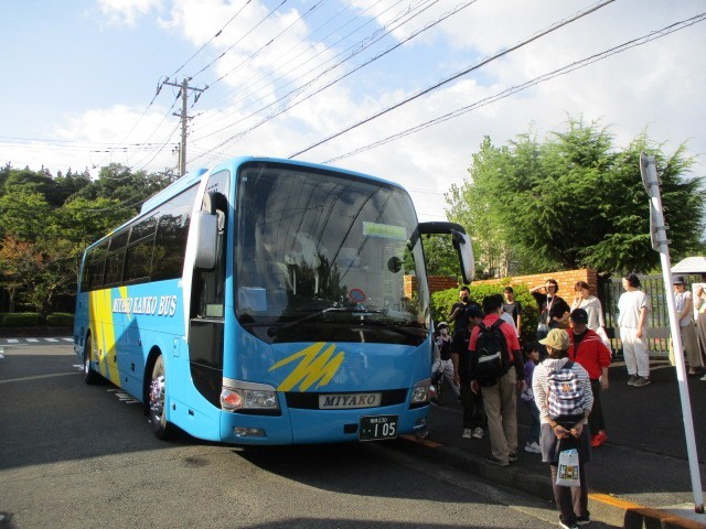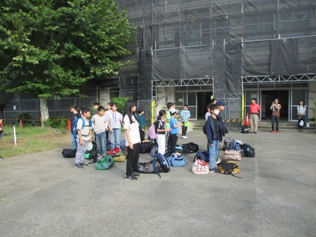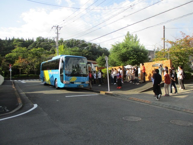 引率の先生方と、見送りの保護者と先生方にあいさつをして、元気に出発しました。見送りに来られた保護者の皆様、朝早くからありがとうございました。