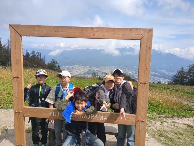 ゴンドラを下りて、下界を見下ろす景色をバックにハイチーズ!