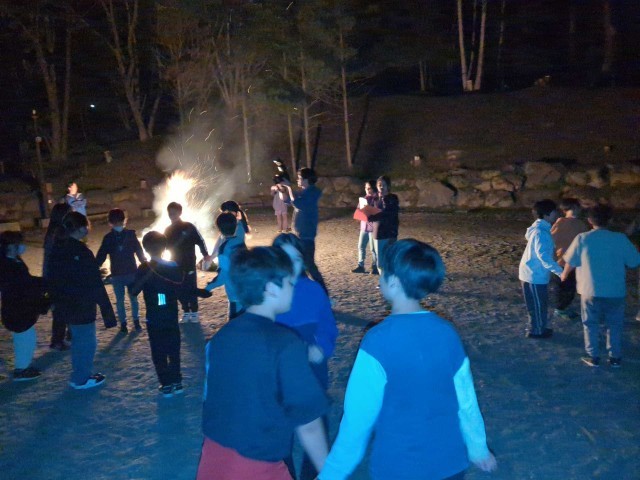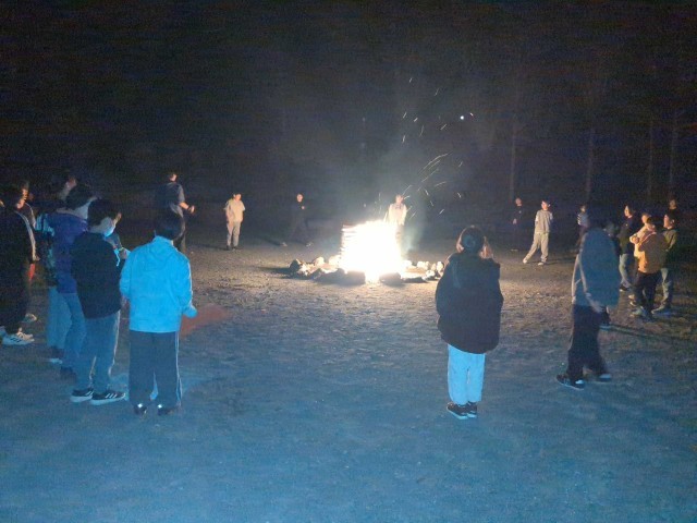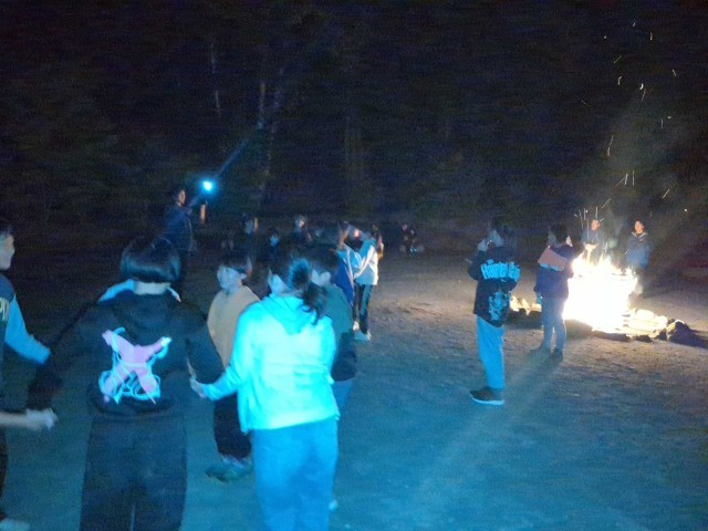 良い天気の中、キャンプファイヤーが行われ、ゲームにダンスに思い切り、楽しみました。