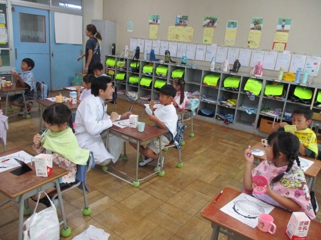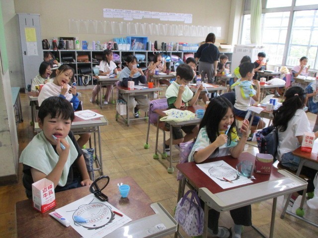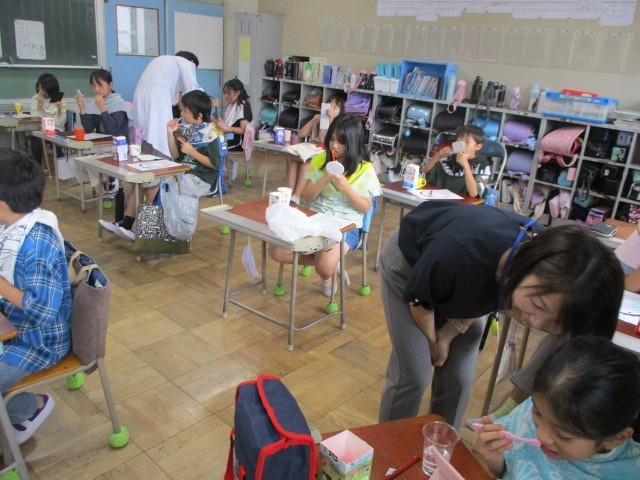 赤く色付いた歯の部分を見て、ワークシートに記録しました。校医の先生に見ていただいて、鏡を見みながら、きれいにブラッシングし直しました。一生使う大切な歯なので、丁寧に磨いていきましょう。