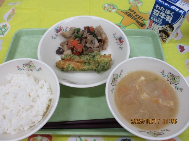 ごはん 笹かまぼこの磯辺揚げ 大根のみそ汁 里芋のうま煮 牛乳
