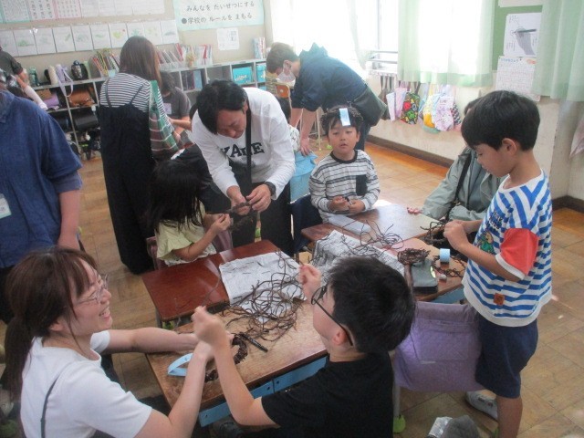 「サツマイモリースをつくろう」学校の畑で獲れたサツマイモのつるでクリスマスリースを作りました。