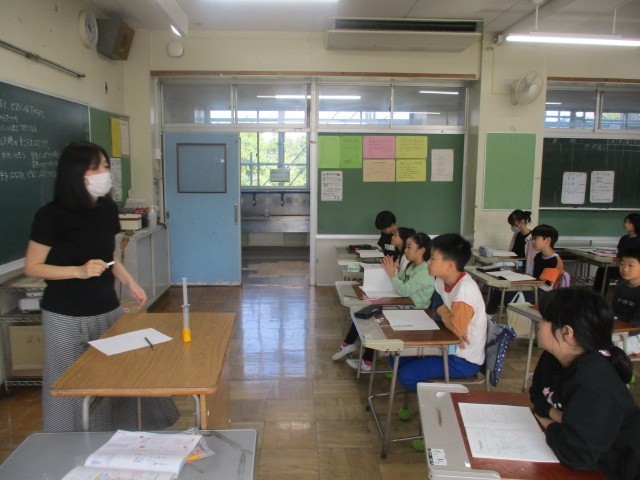理科「とじこめられた空気」この前、体育館で実験をしていたまとめの学習です。