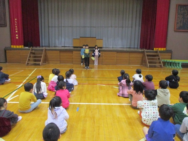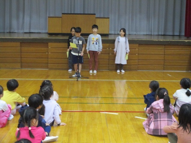 今朝は10月のことば朝会がありました。秋に関する俳句が発表されました。