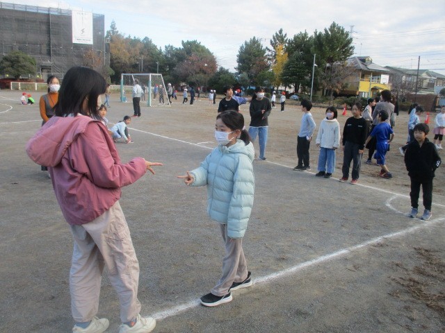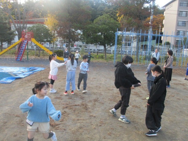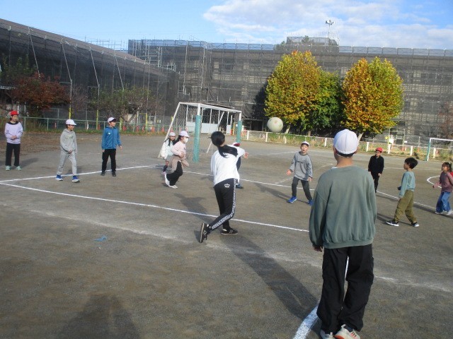 6つのなかよし班に分かれて、それぞれ遊びを考えて6年生が中心に遊びました。「増えおに」「色おに」「ドンじゃんけん」「ドッジボール」、みんな楽しそうでした。