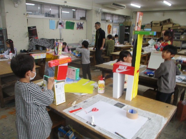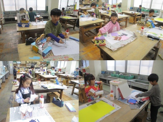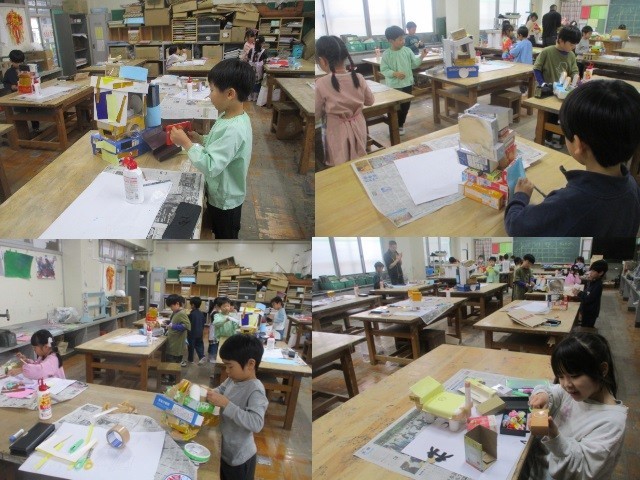 図工「はことはこをくみあわせて」【はことはこでじぶんらしくつくろう!】1年生らしく、自由な発想で、思い思いの作品をつくっていました。