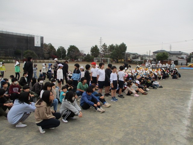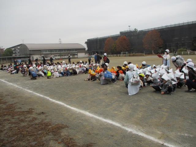 本日の避難訓練は、休み時間中に地震の想定でした。保幼小連携の取組として、大塚保育園と聖徳大学多摩幼稚園のみなさんと合同で行いました。全員の避難確認の報告を終えたのは、3分21秒の速さでした。