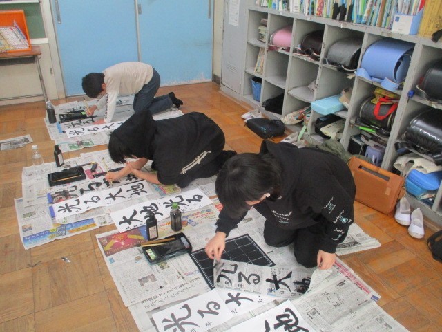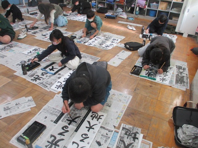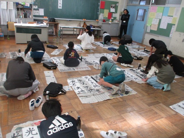 書初めの練習をしていました。「光る大地」もう、年の暮れになっている感じです。