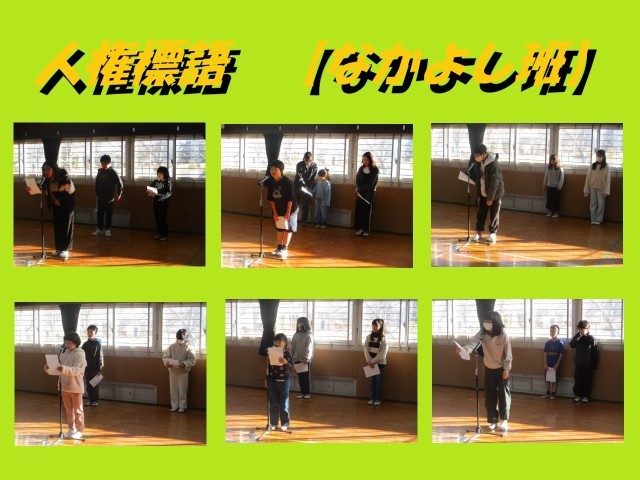 今日は、なかよし班で整列をして、人権標語の発表をしました。いじめのこと・みんなと楽しく遊ぶこと・SNSのこと・声かけすること等、いろいろな発表がありました。鹿島小学校の全員の人権標語をこれから昇降口に掲示します。1月の道徳授業地区公開講座の折にご覧ください。