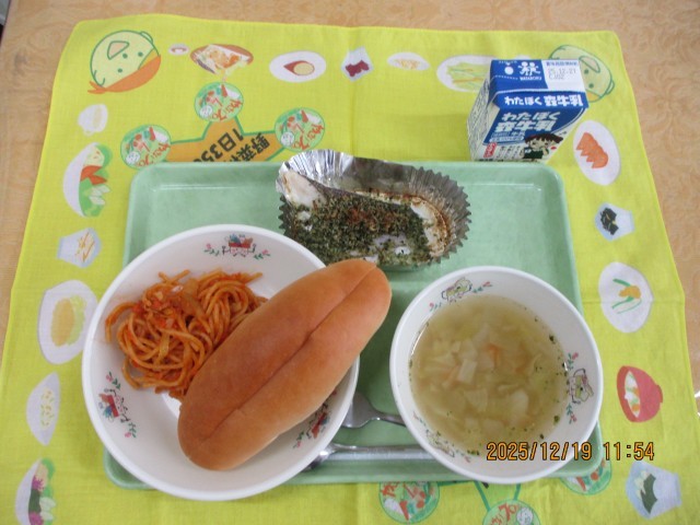 八王子ナポリタンサンド 白身魚の香草パン粉焼 白いんげん豆のスープ 牛乳