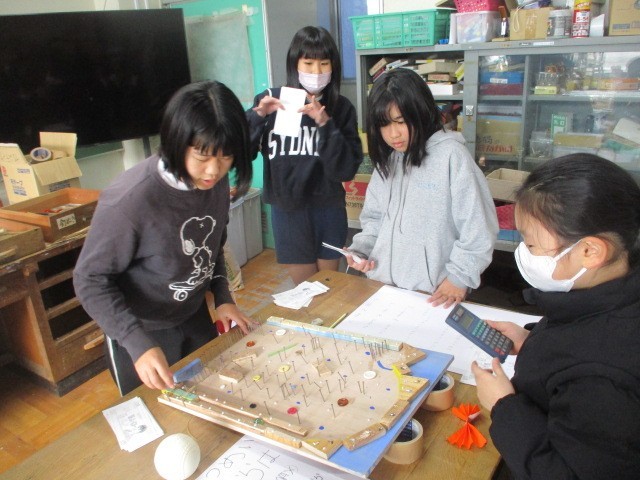 図工室で開催された「コリントゲームセンターかしま」3年生がつくった作品で、遊べます。ただし、特殊なお金がいります。