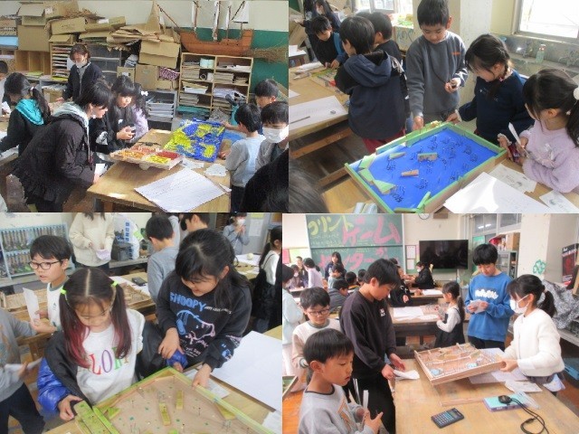 最初は、1年生を招待していましたが、休み時間になると他の学年の子供たちも集まってきました。先生も夢中になってやっていました。