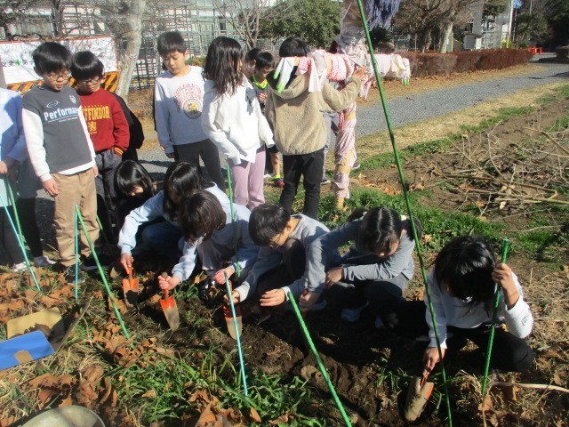 3年生は、3学期に恒例になっている「こんにゃくづくり」がありますが、今日は、土の中から「こんにゃくいも」を救出していました。