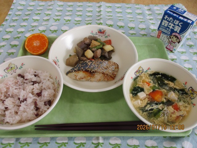 今日は「小正月」です。小正月の朝は一年の無病息災を願って「小豆粥」を食べる風習が日本にはあります。給食もそれに倣って「小豆粥」ならぬ「小豆ごはん」を作りました。子どもたちにも大変好評でたくさん食べてくれました。これでこの一年は病気にかからないことを願って…