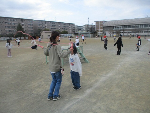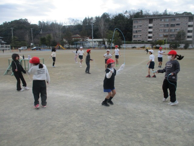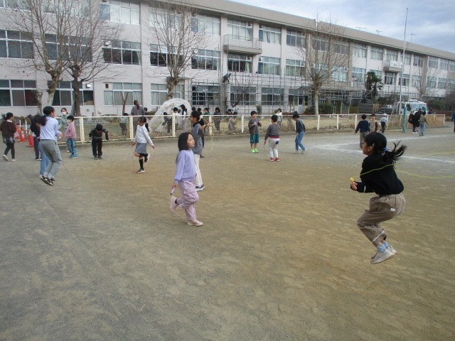 早速、中休みに校庭では、寒さに負けず、なわとびをする子供たちがたくさんいました。