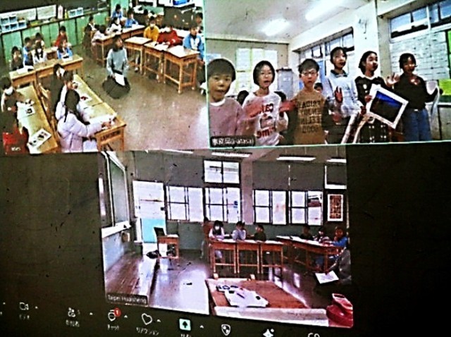 4年生が台湾の小学生とインターネットを使い、オンラインで交流を行いました。