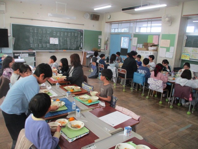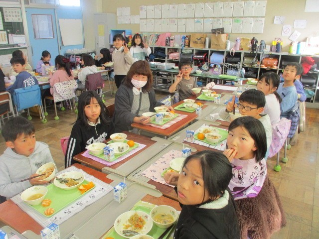 今日から、ウェルカム給食が始まりました。専科の先生、事務職員・栄養士・市の職員等、普段は、一緒に給食を食べない人を迎えて交流しながら食べています。