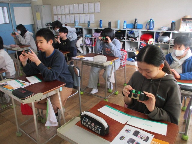 今日は、写真協会の方を招いて、授業がありました。私は懐かしいですが、子供たちは見たことも触ったこともないフイルムインスタントカメラを手渡され、卒業の思い出として、学校内で撮影を行いました。